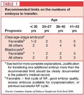 The ASRM (American Society for Reproductive Medicine) has published guidelines on the recommended number of embryos to transfer.